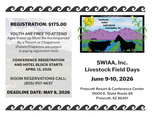 The Southwest Indian Agricultural Association (SWIAA) was formed in 1987 to promote the future of agriculture on reservations. The founders included tribes and individual Indian and non-Indian farmers, ranchers and businessmen.
